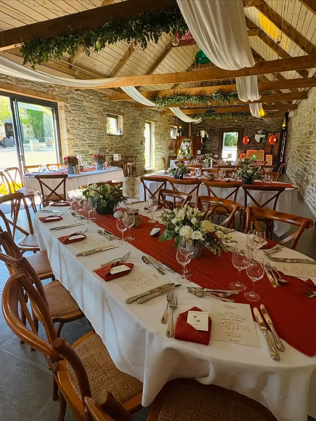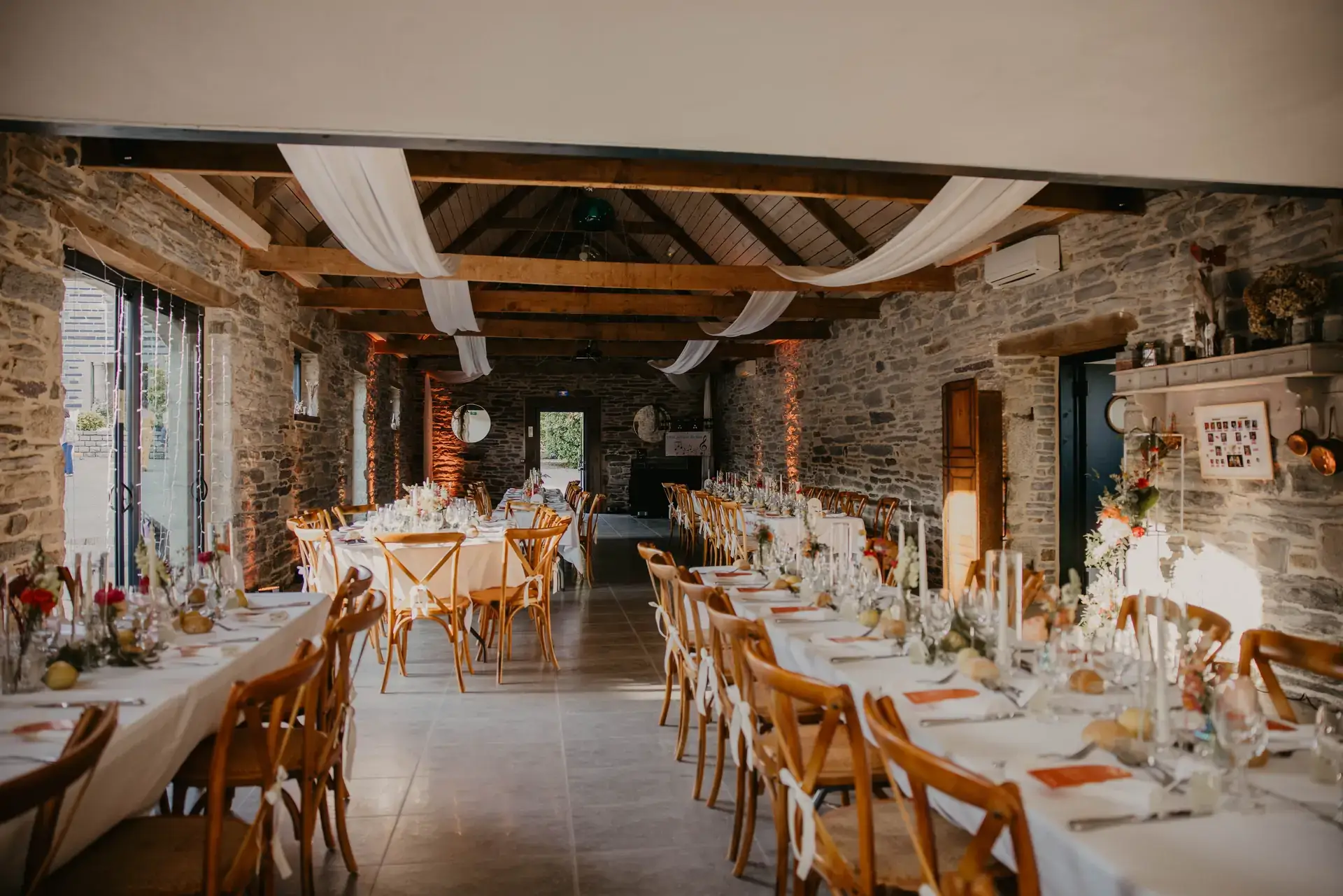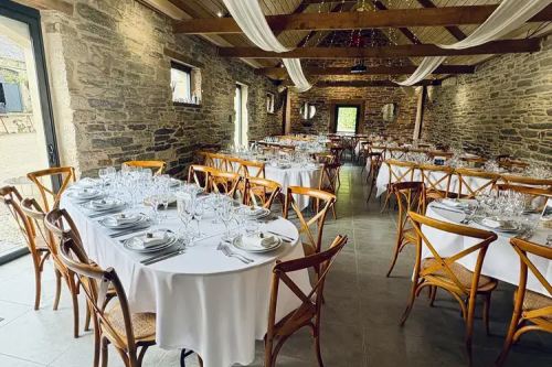 - Cette salle allie authenticité et convivialité grâce à ses poutres apparentes, sa hauteur sous plafond et ses murs de pierres ardoisées